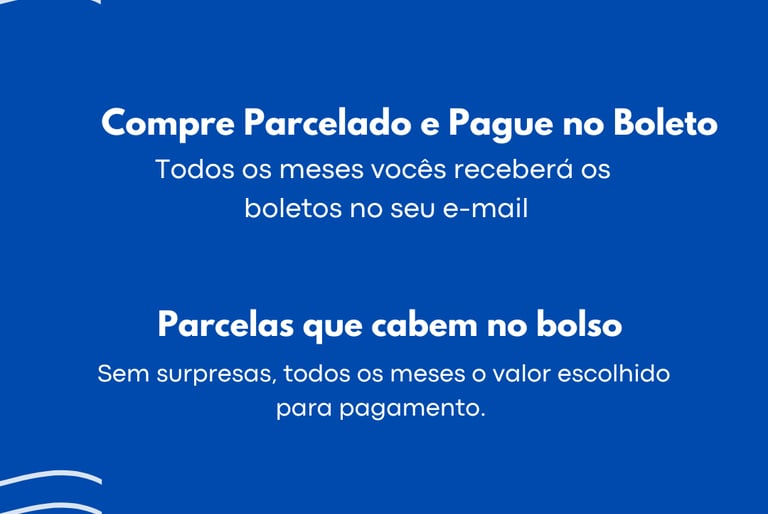 utilizando boletos bancários. Essa modalidade é oferecida como alternativa ao pagamento à vista ou no cartão de crédito.